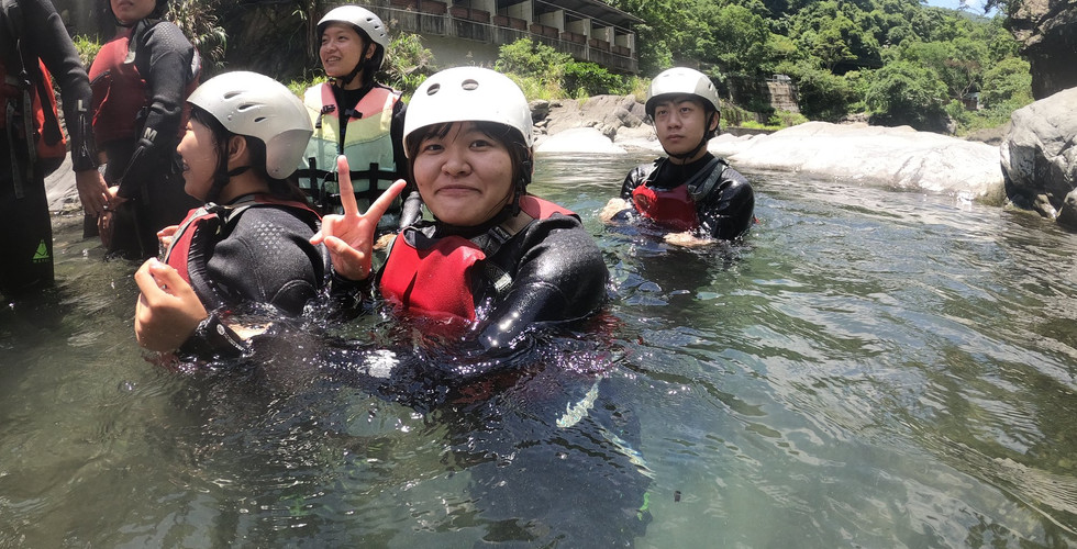 張若芸說:「活動印象最深刻的挑戰就是跳水,因為我是一個不會游泳又不會憋氣的人,很害怕嗆到水,經過白浪教練指導之下,練習幾次之後,發現要抓到時機點憋氣才不易嗆到,從崖上跳下去那瞬間,好像把我一生煩惱都被拋在九霄雲外,感覺身心都變得乾淨,我開始享受玩水的過程,也克服心中怕水的恐懼。」