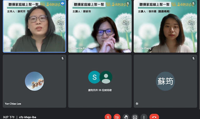 最後,許多聽損家長紛紛提出問題,像是好奇孩子如何雙語學習?視訊上課時孩子如何與老師互動?以及關於輔具選擇等等。大家互相交流與學習。在活動結束後,有家長回饋我們,兩位講師的分享讓他們感受到有很大的幫助,讓家長在面對疫情的起伏,聽完講座分享,可以讓心感到安定。我們也期待下次仍有不同的主題可以再邀請家長一同相聚。